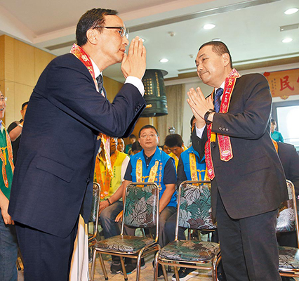 朱立倫(左)與侯友宜(右)至土城慈法禪寺參加浴佛節(jié),兩人先后到場(chǎng)短暫寒暄。針對(duì)賴清德批韓國瑜提出的自貿(mào)區(qū)說帖,朱立倫反諷,“賴‘院長(zhǎng)’記憶不太好”,賴清德?lián)闻_(tái)南市長(zhǎng)就已經(jīng)在談自經(jīng)區(qū)。(圖片來源:臺(tái)灣“中時(shí)電子報(bào)”)