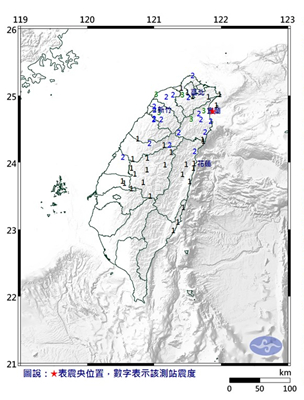宜蘭縣近海今天(13日)下午4時55分,發(fā)生里氏規(guī)模4.9級地震。(圖片取自臺媒)