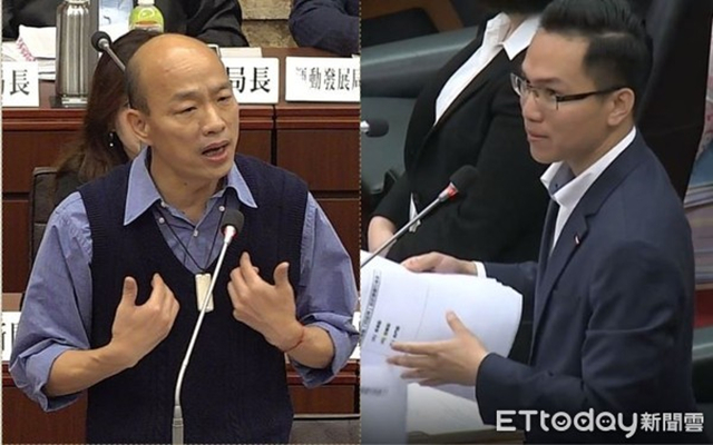 民進黨議員林智鴻13日質(zhì)詢高雄市長韓國瑜時,被韓認為故意刁難,韓怒嗆,不能接受。(圖片來源:臺灣“東森新聞云”)