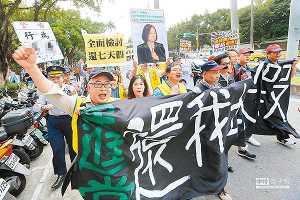 勞工團(tuán)體抗議“勞基法”改革。(圖片來源:臺(tái)灣“中時(shí)電子報(bào)”)