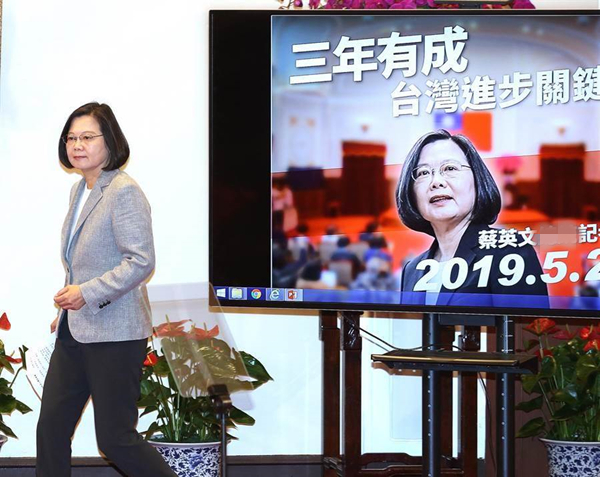 蔡英文宣稱執(zhí)政三年有成。(圖片來(lái)源:臺(tái)灣“中時(shí)電子報(bào)”)