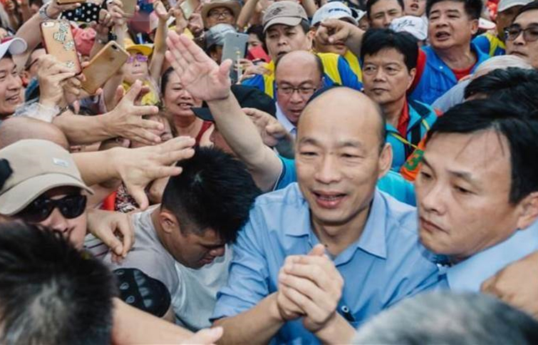 韓國瑜1日出席凱道挺韓大會師,現(xiàn)場涌入數(shù)十萬人,因熱情的韓粉簇擁,讓韓進場就走了10多分鐘。(圖片來源;臺灣“中時電子報”)