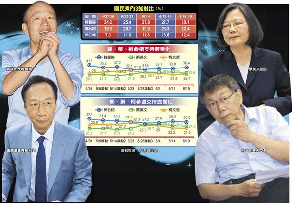 臺媒最新調(diào)查:韓國瑜擺脫亂流 民調(diào)穩(wěn)站第一