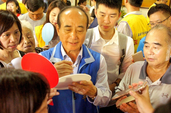 王金平拜廟,信眾擁簇向他要簽名。(圖片來源:臺灣《聯(lián)合報》)