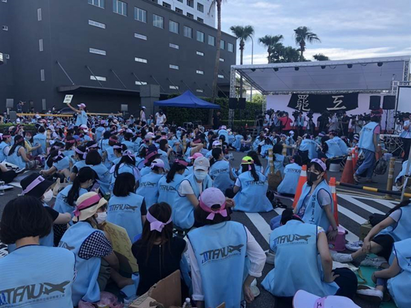 長(zhǎng)榮空服員罷工邁入第4天。(圖片來(lái)源:臺(tái)灣“中時(shí)電子報(bào)”)