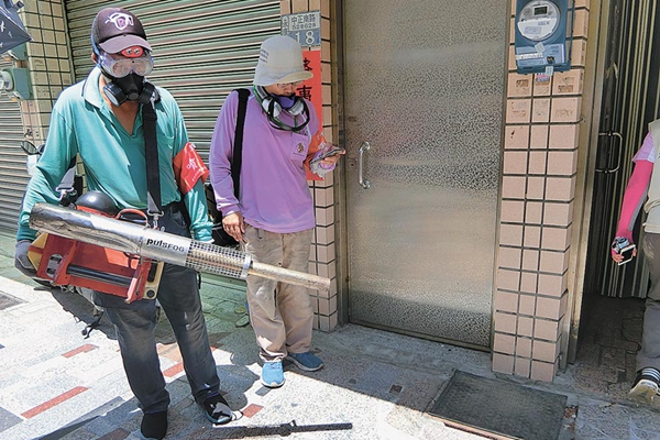 臺南市發(fā)現(xiàn)一例登革熱疫情,開展噴藥消滅蚊蟲。(圖片來源:“臺灣中時電子報”)