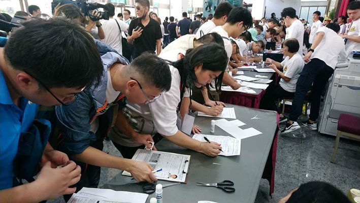 臺(tái)北市長(zhǎng)柯文哲8日成立政黨“臺(tái)灣民眾黨”,許多支持者到場(chǎng)登記加入政黨,表示支持。(圖片來源:臺(tái)灣“中時(shí)電子報(bào)”)