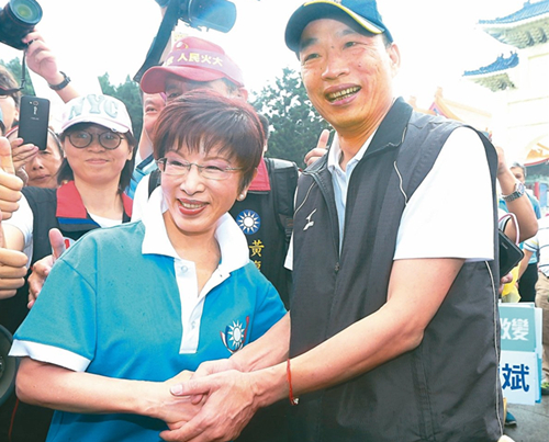 洪秀柱與韓國瑜。(圖片來源;臺灣《聯(lián)合報(bào)》)