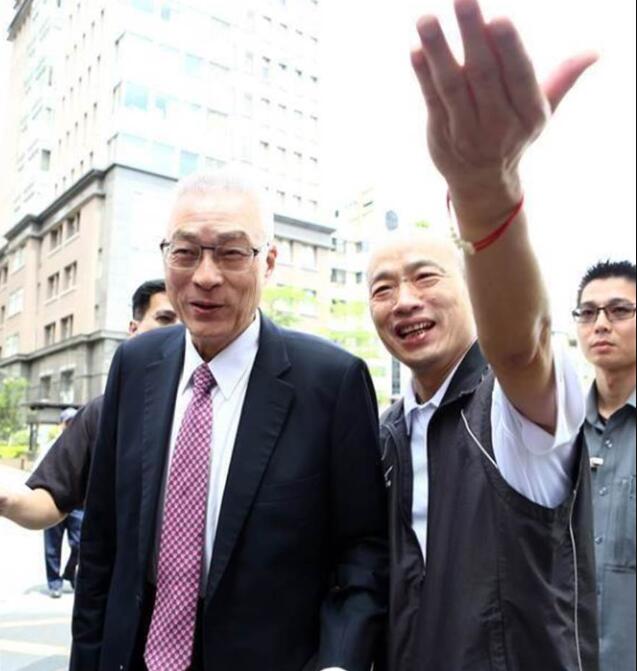 國民黨主席吳敦義(左)與贏得初選的黨內(nèi)候選人韓國瑜(圖片來源:臺灣《中時電子報》)