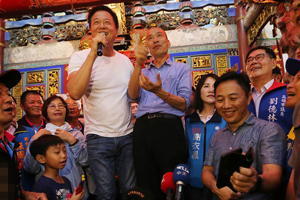 韓國瑜到彰化進(jìn)行寺廟之旅,1日傍晚來到二林鎮(zhèn)仁和宮參拜。(圖片來源:臺灣“中時電子報”)