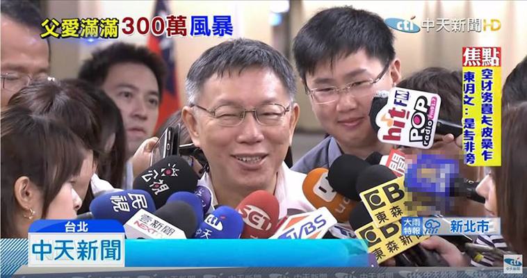 柯文哲被問到是否覺得300萬有什么問題時說,“這要問當事人還有他兒子啊,我只是說他大概年紀太大了,不會用這種現(xiàn)代電子轉帳的技術,所以只好提著這么多的現(xiàn)金,不然銀行轉帳就好了”。