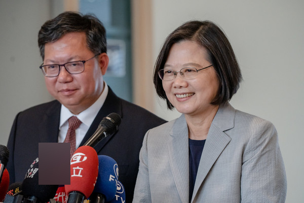 臺(tái)灣地區(qū)領(lǐng)導(dǎo)人蔡英文與桃園市長(zhǎng)鄭文燦。(圖片來源:臺(tái)灣“東森新聞云”)