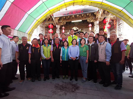 蔡英文14日到臺(tái)南鹽水區(qū)護(hù)庇宮上香。(圖片來源:“中時(shí)電子報(bào)”)