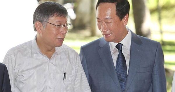 柯文哲與郭臺(tái)銘。(圖片來源:臺(tái)灣“中時(shí)電子報(bào)”)