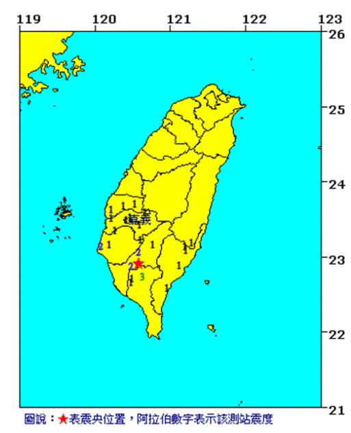 臺灣一夜連發(fā)三起地震 兩起在高雄