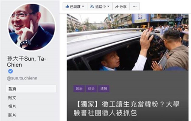 中國臺灣網(wǎng)10月23日訊 據(jù)臺灣“中時電子報”報道,國民黨2020參選人韓國瑜陣營,日前在臺灣中正大學校園臉譜網(wǎng)(facebook)社團“中正大學不分系級版”中征求工讀生。但有一家臺灣網(wǎng)媒解讀成是“被抓包征工讀生充當韓粉?”韓國瑜北部競選辦公室副執(zhí)行長孫大千上午(23日)在臉譜網(wǎng)(facebook)批評,“這算不算假新聞?征人消息中哪一句提到韓粉?”