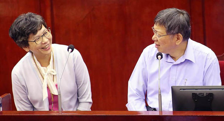 臺北市政府顧問蔡壁如(左),臺北市長柯文哲(右)(圖片來源:臺灣“中時電子報”)