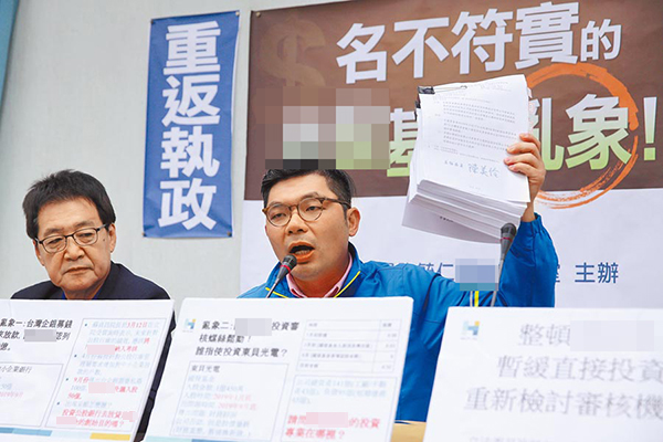 此外,許還指出,資產(chǎn)總額僅670億的臺企銀(臺灣中小企業(yè)銀行)終于撐不住,在9月份傳出需私募100億元,最后還是臺灣發(fā)展基金進場認股50億元。許毓仁認為,目前臺灣發(fā)展基金直接投資的部分應該要全面暫緩,重新整頓后才能繼續(xù)進行,否則民眾的錢根本打水漂。