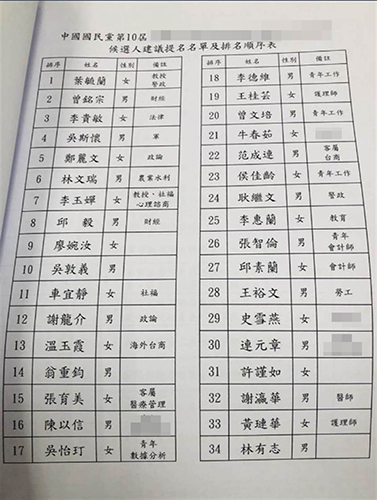 國民黨不分區(qū)“立委”名單。(圖片取自臺媒)