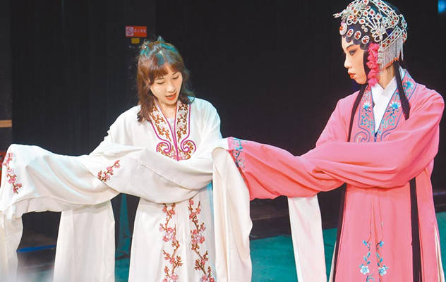 兩岸文教交流實屬常態(tài)。圖為臺灣銘傳大學學生前往四川川劇院,向當家花旦學習川劇技巧。(圖片來源:臺灣“中時電子報”)