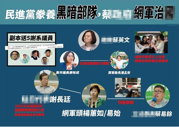 國(guó)民黨列出網(wǎng)軍跟民進(jìn)黨的關(guān)系網(wǎng)絡(luò)。(圖片取自臺(tái)媒)