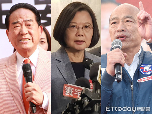 親民黨2020候選人宋楚瑜、民進黨2020候選人蔡英文、國民黨2020候選人韓國瑜。(圖片來源:臺灣“東森新聞云”)