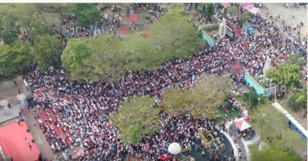 韓國(guó)瑜周末臺(tái)南大造勢(shì),空拍影片曝光,現(xiàn)場(chǎng)滿(mǎn)滿(mǎn)的人潮。(圖片取自臺(tái)媒)