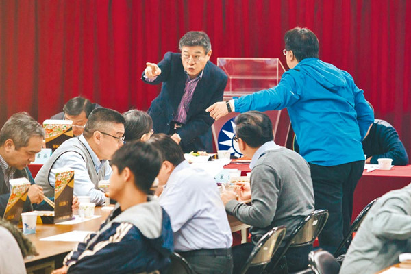 國民黨22日舉行年終感謝便當餐會,代理主席林榮德(后中)也一同出席。(圖片來源:臺灣“中時電子報”)