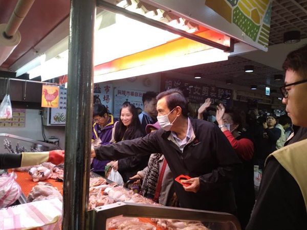 馬英九到住家附近的興隆市場發(fā)春聯(lián)。(圖片來源:臺灣“中時電子報”)