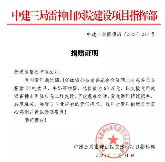 疫情發(fā)生以來,新希望集團(tuán)各分子公司以多種方式馳援疫情防控作戰(zhàn),積極踐行根植社會、回報(bào)社會的企業(yè)信念。正如劉永好董事長在致全體員工信中說到的,只要我們堅(jiān)定信心,眾志成城,科學(xué)防治,定能共克時(shí)艱,取得這場“抗疫戰(zhàn)爭”的勝利。ㄍ辏