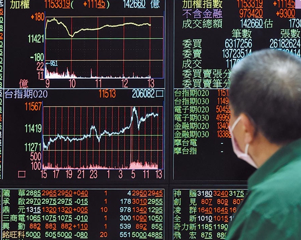 臺(tái)股開盤跌129點(diǎn)。(臺(tái)灣“中時(shí)電子報(bào)”資料圖)