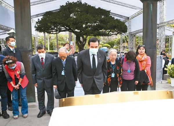 馬英九(中)上午到“二二八”和平公園福德宮上香祈福,并到“二二八”紀(jì)念碑追思。(圖片來源:臺灣《聯(lián)合報》)