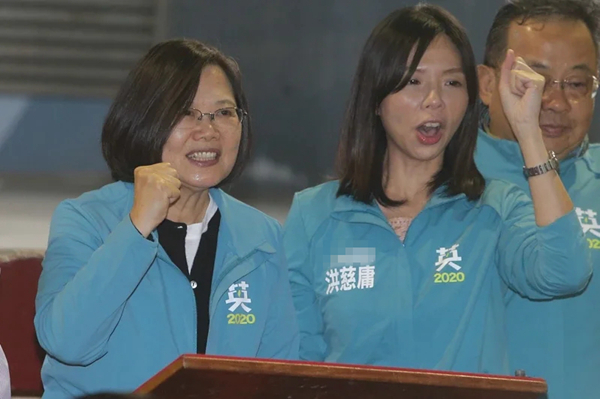 蔡英文(左)今年初多次到臺中為洪慈庸(右)助選。(圖片來源:臺灣《聯(lián)合報》)