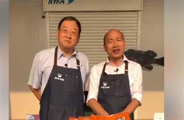 韓國瑜化身“賣魚郎”推銷高雄漁產(chǎn)。(圖片取自臺媒)