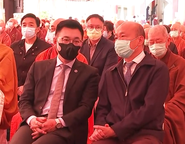 國民黨主席江啟臣今天(15日)與高雄市長韓國瑜聯(lián)袂出席高雄光德寺凈心老和尚圓寂贊頌會(huì)。(圖片取自臺(tái)媒)