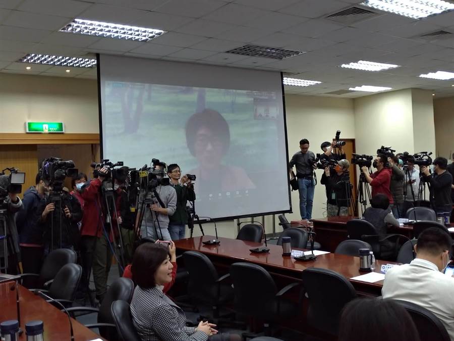 臺東縣長饒慶鈴?fù)高^視訊參加國民黨中常會。(圖片來源:臺灣“中時(shí)電子報(bào)”)