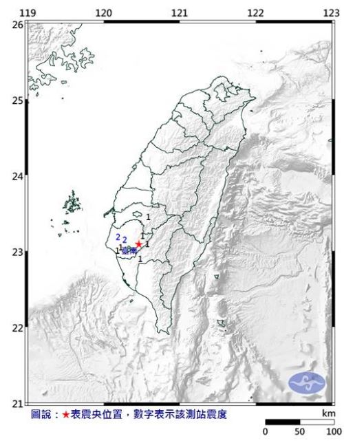 中國臺(tái)灣網(wǎng)4月2日訊 據(jù)臺(tái)灣“中時(shí)電子報(bào)”報(bào)道,根據(jù)臺(tái)氣象部門地震觀測(cè),今日(2日)上午10:52臺(tái)南發(fā)生4.0級(jí)有感地震,震中位于臺(tái)南市南化區(qū),地震深度為9公里,臺(tái)南最大震度為3級(jí),高雄和嘉義最大震度1級(jí)。(中國臺(tái)灣網(wǎng) 李寧)