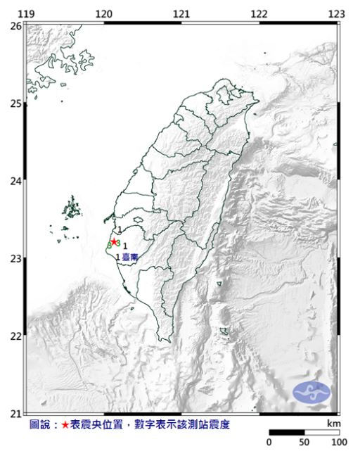 臺灣臺南市發(fā)生3.2級地震 最大震度3級