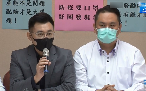 16日,國(guó)民黨串聯(lián)22縣市議會(huì),召開“紓困發(fā)現(xiàn)金、防疫要口罩”記者會(huì).(圖片來源:臺(tái)灣“中時(shí)電子報(bào)”)