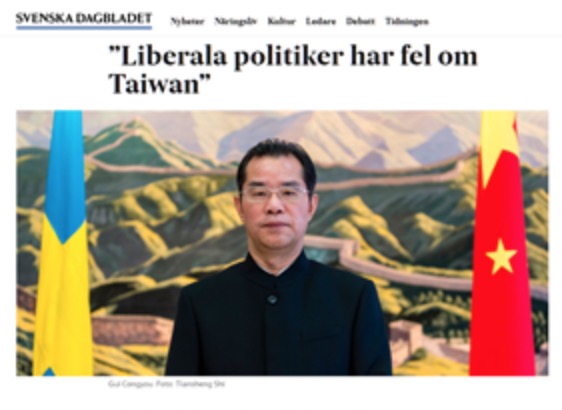 駐瑞典大使桂從友在《瑞典日?qǐng)?bào)》發(fā)表題為《少數(shù)瑞典政客不應(yīng)就涉臺(tái)問題發(fā)表錯(cuò)誤言論》的署名文章。(來源:外交部官網(wǎng)截圖)