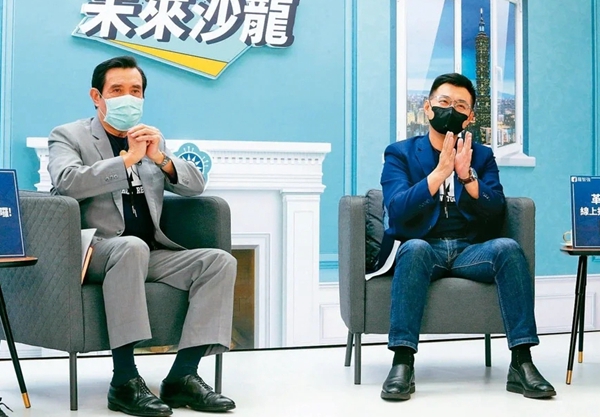 馬英九(左)昨與江啟臣(右)出席國(guó)民黨革命實(shí)踐研究院舉辦的“未來(lái)沙龍”首場(chǎng)直播會(huì)。(圖片來(lái)源:臺(tái)灣《聯(lián)合報(bào)》)