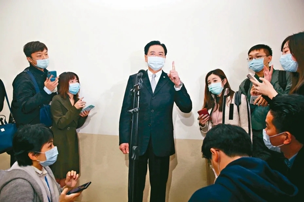 民進(jìn)黨當(dāng)局外事主管部門(mén)負(fù)責(zé)人吳釗燮(中)。(圖片來(lái)源:臺(tái)灣《聯(lián)合報(bào)》)