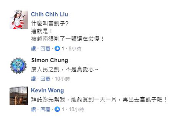 有島內民眾在社交媒體評論稱,民進黨當局是“被越南狠削了一頓還在裝傻”。更有民眾直言“拜托先幫我能夠買到一天一片口罩,再出去當凱子吧!”