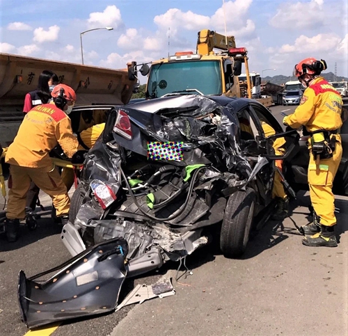 中國臺灣網(wǎng)5月2日訊 據(jù)臺灣《聯(lián)合報》報道,屏東縣里港鄉(xiāng)屏10線青龍寺附近今天(2日)上午近9時發(fā)生連環(huán)車禍案,現(xiàn)場為4輛砂石車及2輛轎車追撞,有2名乘客受困。屏東縣消防局派遣3輛破壞器材車、6輛救護車共9車17人前往救援,抵達現(xiàn)場后于9時19分分別將人員救出及送醫(yī),現(xiàn)場有8名傷者(5男3女),無生命危險。