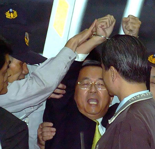 2008年11月,陳水扁被當(dāng)時(shí)的“特偵組”羈押。(圖片來(lái)源:臺(tái)灣“中時(shí)電子報(bào)”)