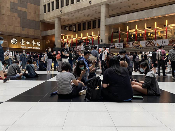 臺網(wǎng)友發(fā)起“坐爆臺北車站”活動。(圖片來源:臺灣“中時電子報”)