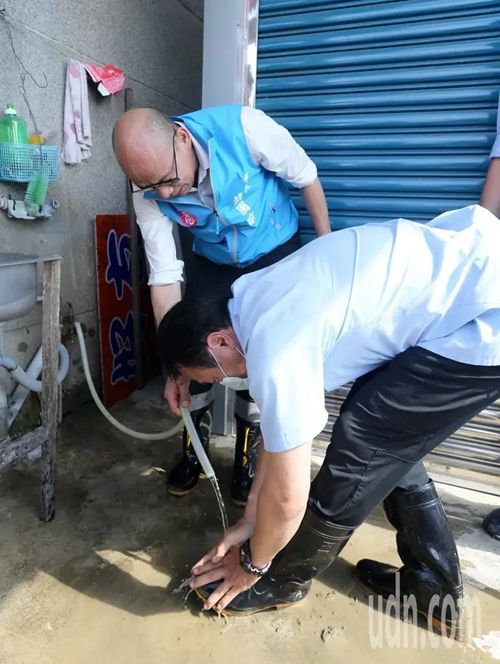 要趕往下一個行程前,韓國瑜到菜園旁水龍頭洗鞋,也彎腰為同行的洪姓隨扈服務(wù),貼心舉動讓隨扈有些不好意思。(圖片來源:臺灣《聯(lián)合報》)