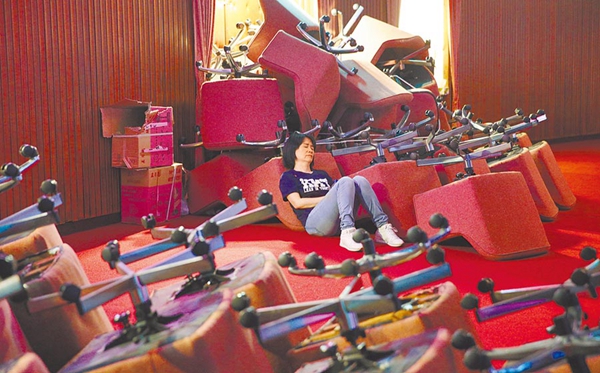 國民黨“立委”28日突襲占領(lǐng)臺“立法院”議場,并用座椅擋住大門。(圖片來源:臺灣“中時電子報”)