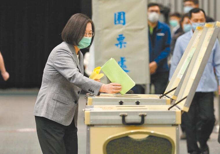 民進黨黨代會19日登場,黨主席蔡英文參與中執(zhí)委、中評委選舉投票。(圖片來源:臺灣“中時電子報”)