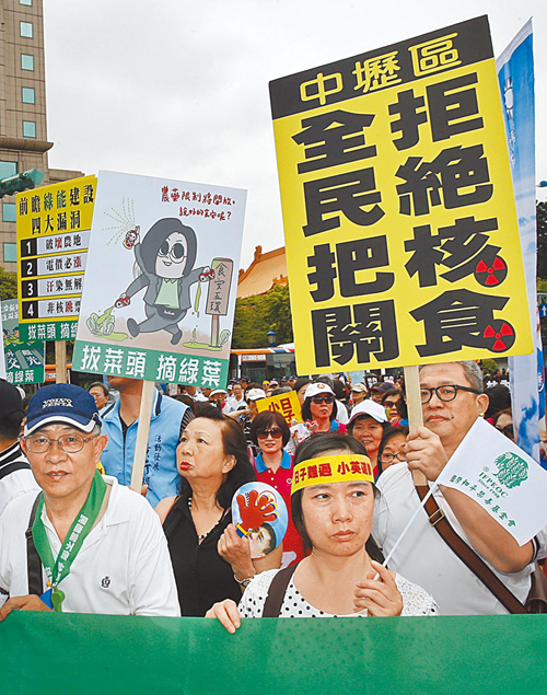 圖為2017年島內(nèi)民眾走上街頭,表達(dá)拒絕核食進(jìn)口。(圖片來(lái)源:臺(tái)灣“中時(shí)新聞網(wǎng)”)